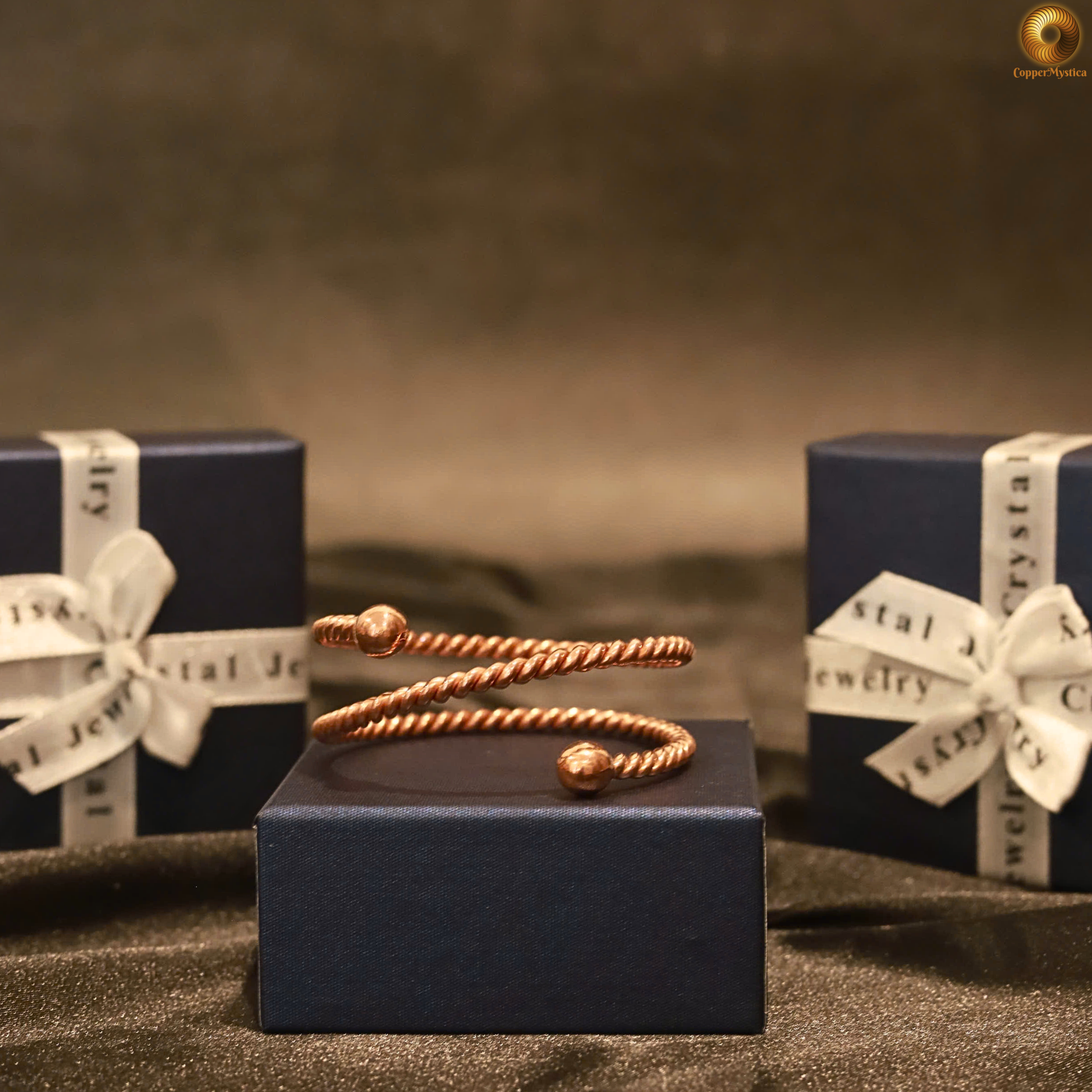 The Infinity Twist Tensor Bracelet is a beautifully handcrafted piece, made from 99.99% pure red copper. This bracelet merges artistry and sacred geometry with its elegant infinity twist design, symbolizing eternal movement and balance. Each bracelet is carefully shaped, showcasing the timeless beauty of handcrafted copper jewelry.