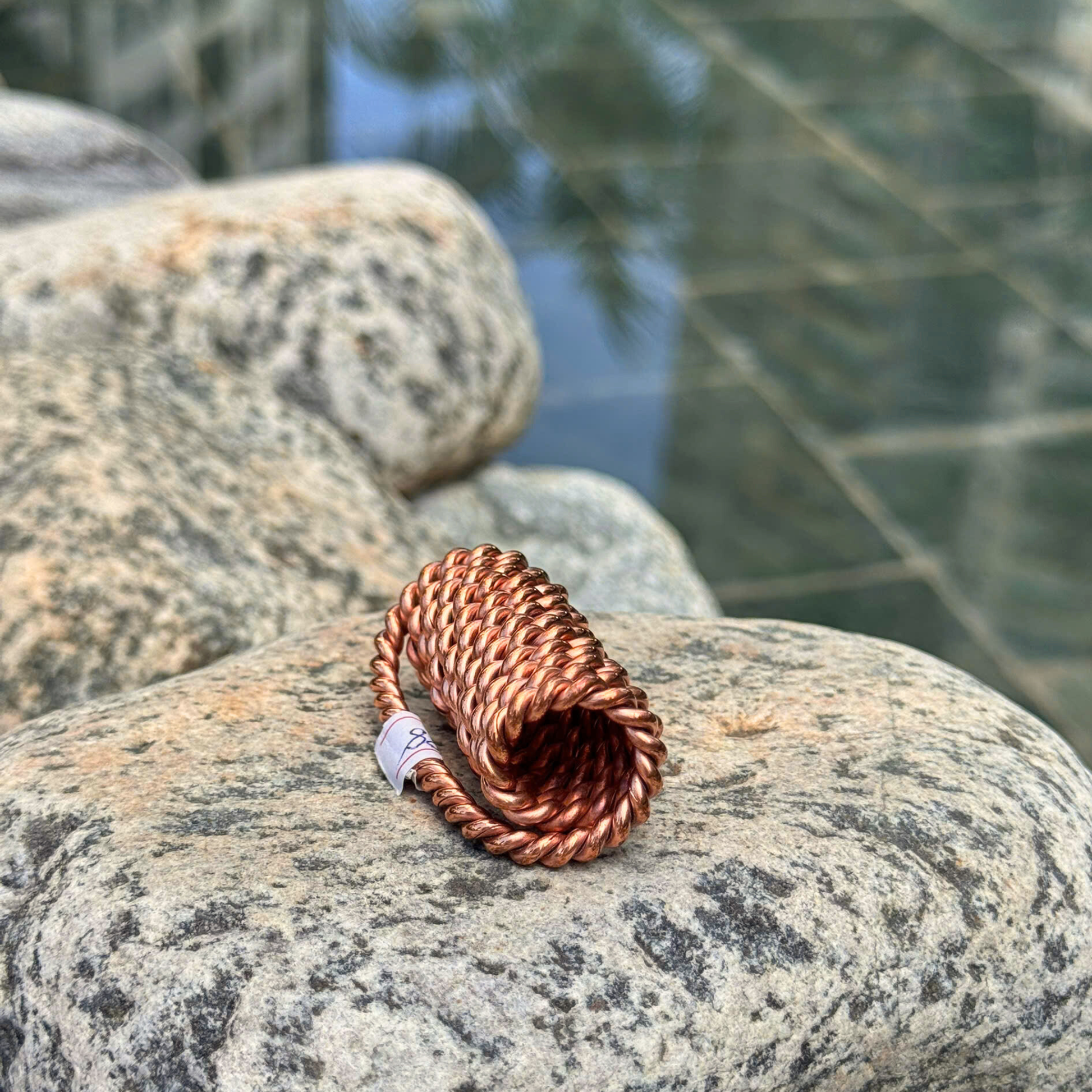 Each piece is carefully twisted by hand to form a balanced coil that reflects harmony, precision, and craftsmanship.