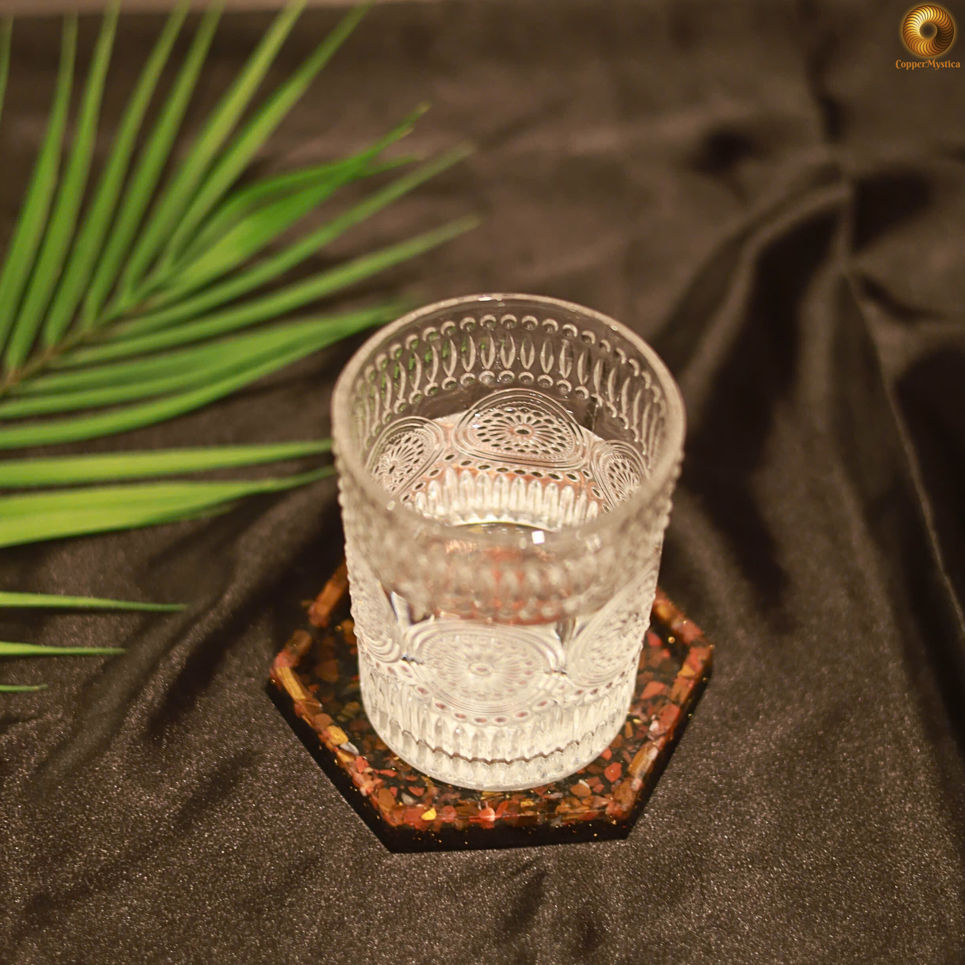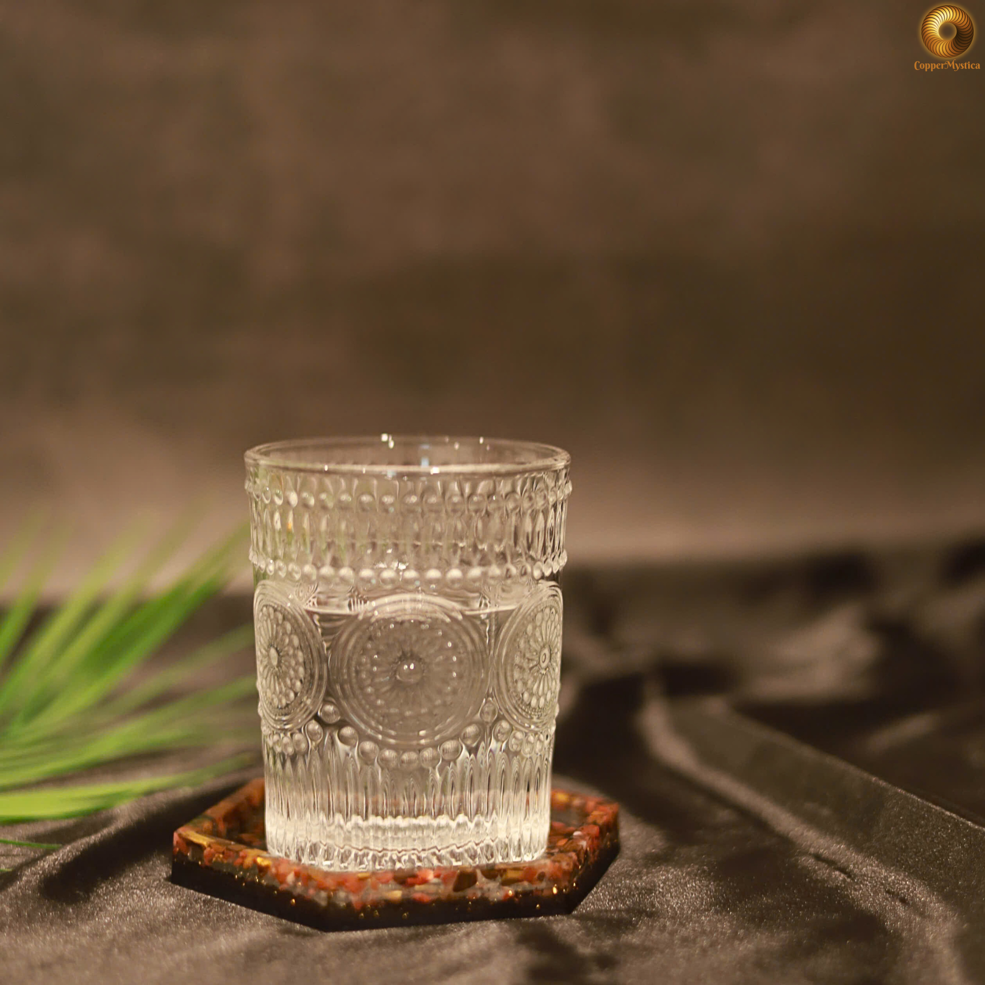 Elevate your daily hydration with this Tensor Water Charging Cup, handcrafted with a Triskelion coil, a 144MHz Tensor Ring, and a blend of Earth-element crystals including red, orange, and yellow quartz.