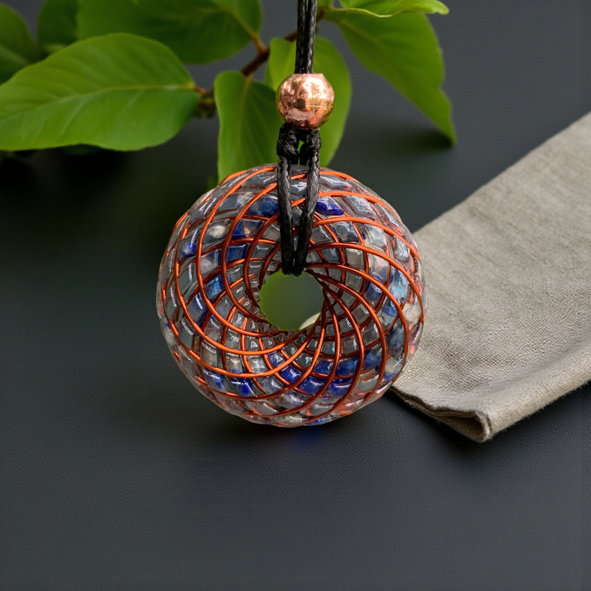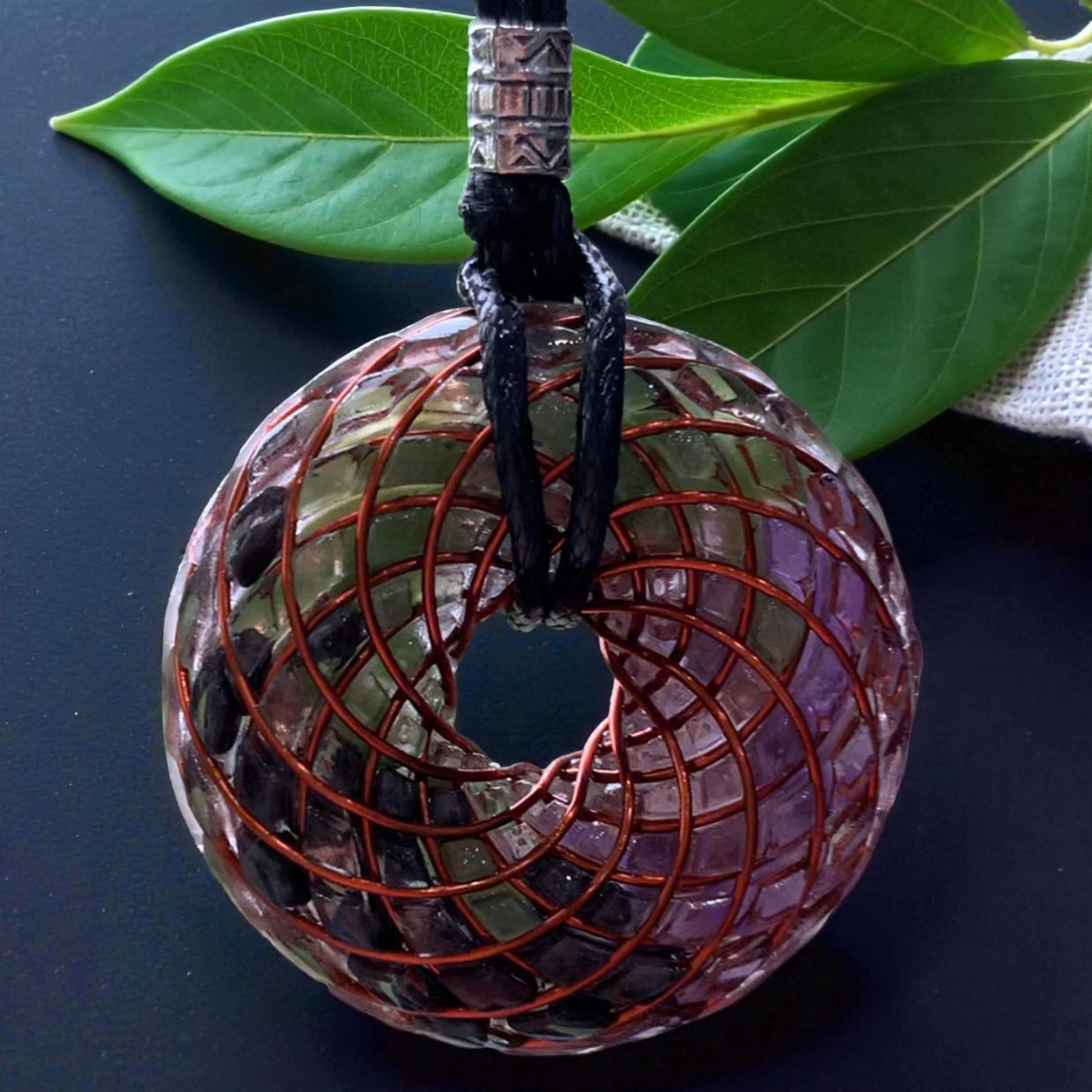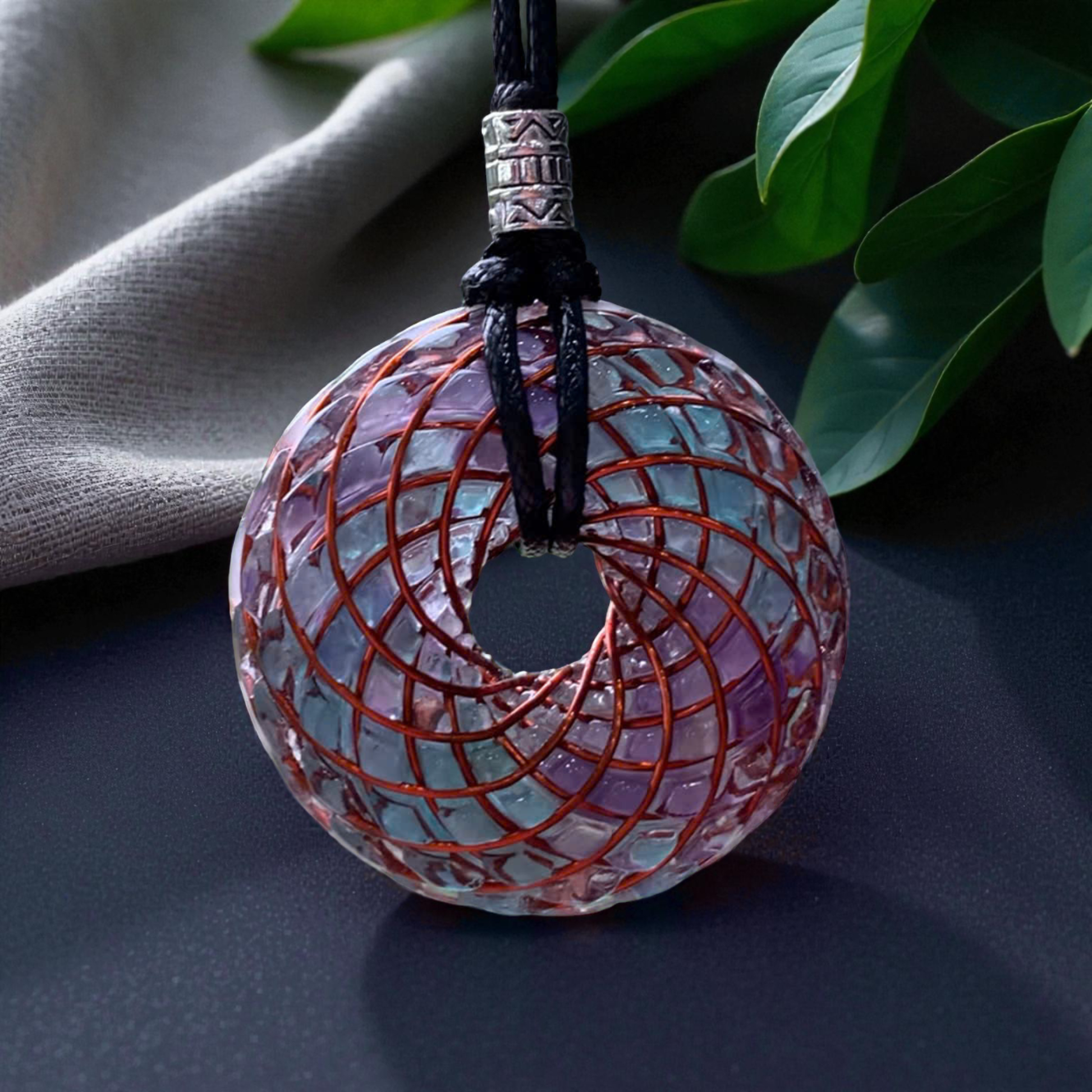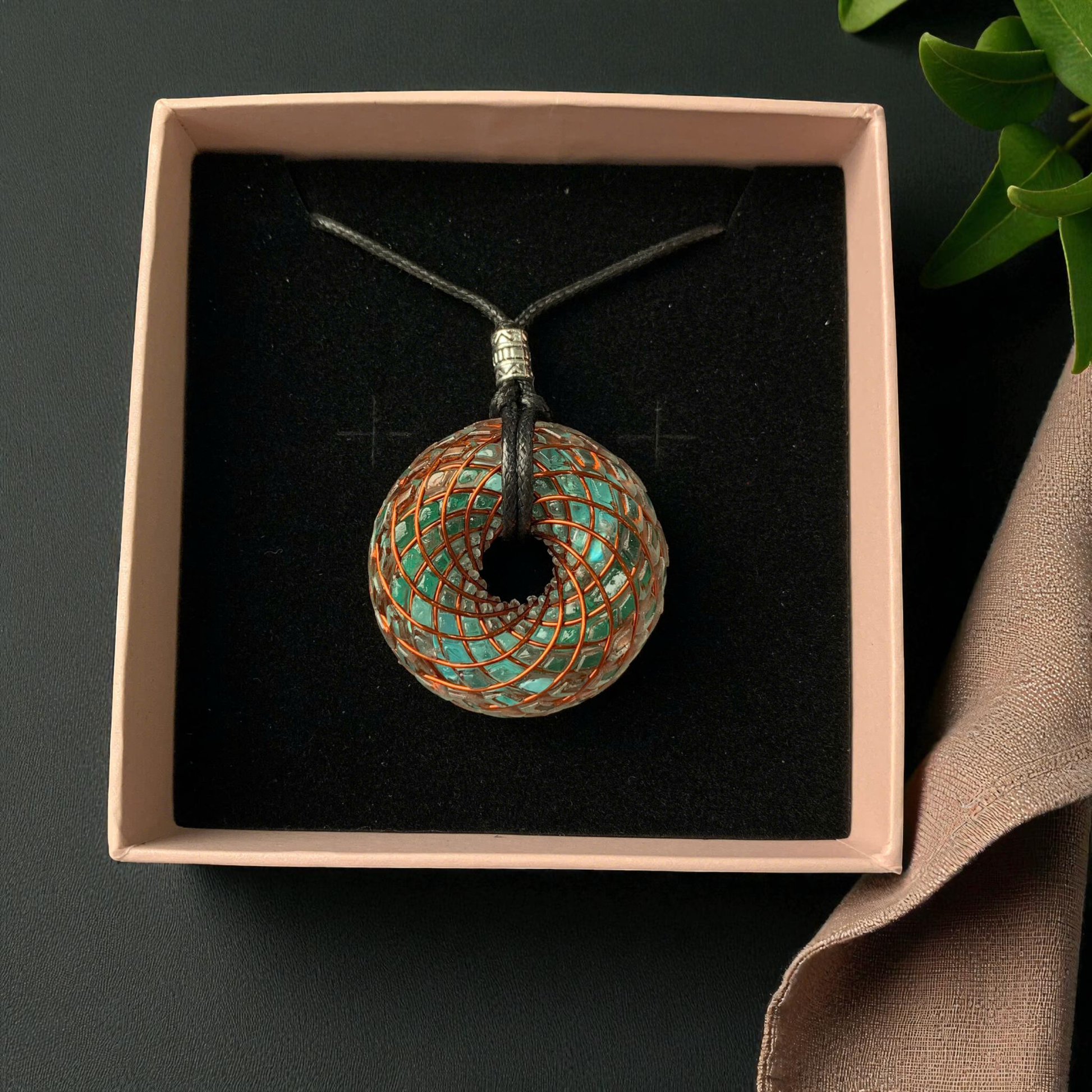 The Torus Tesla Pendant is a wearable vortex of light and intention — a miniature embodiment of sacred geometry and Tesla’s energetic principles. Handcrafted from copper, resin, and natural crystals, this 4 cm pendant mirrors the toroidal field — the infinite flow through which energy continually circulates and renews itself.